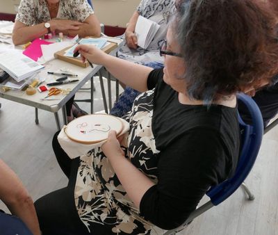 Loetitia is a hand embroidery specialist. Stumpwork, Goldwork and Silk Shading are her techniques of choice. Her talk will cover her work and how she designs, from the smallest robin to the large Jabberwocky or even Darth Vader. She will explain how she came to being obsessed with traditional hand embroidery when it all just started with a bit of cross-stitch.